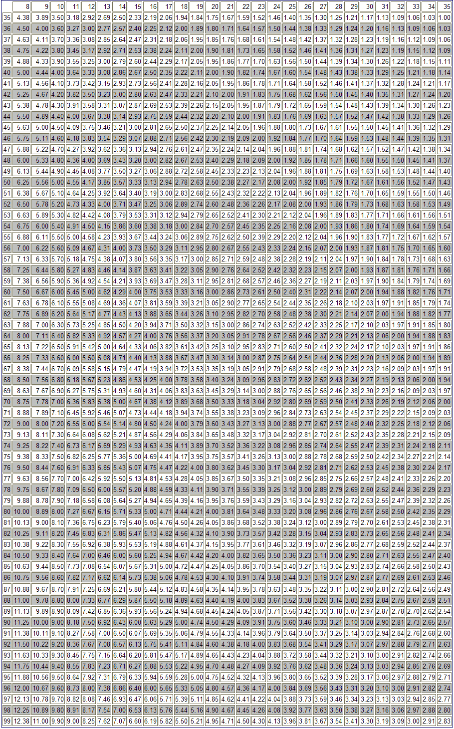 Chart 1: Wheel Gear to Swivel Gear Ratio